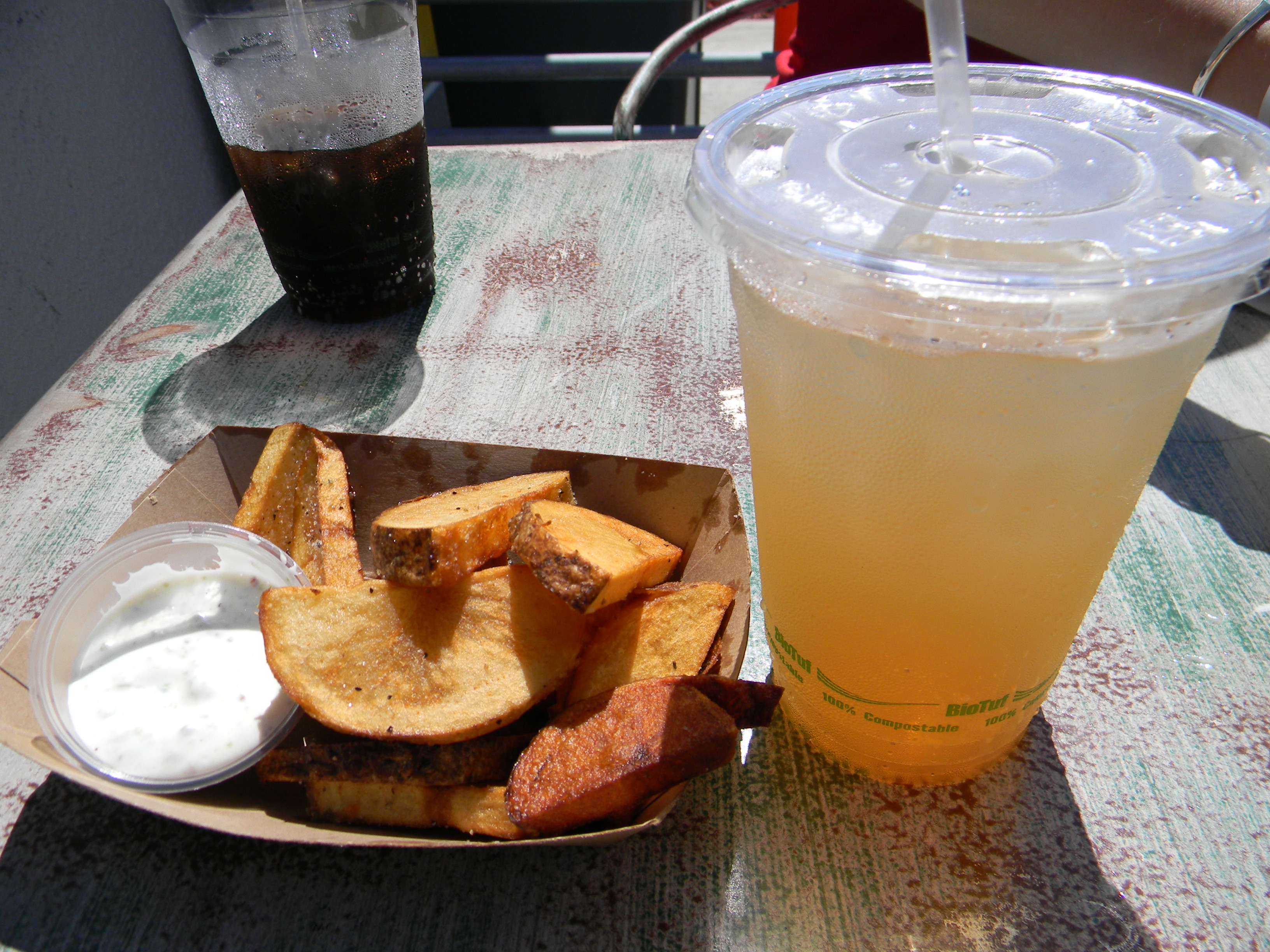 OK, so here is how the story goes…while driving around looking for good grub, I passed a little restaurant named The Shwack Beach Grill that was PACKED, so I stopped – don’t be afraid to try something new.  This blog is not about food, but it did lead me to my discovery:)  After having a yummy chicken sandwich (at a great price) and amazing spuds – see picture below – I noticed a park at the end of the street with a beautiful view.
